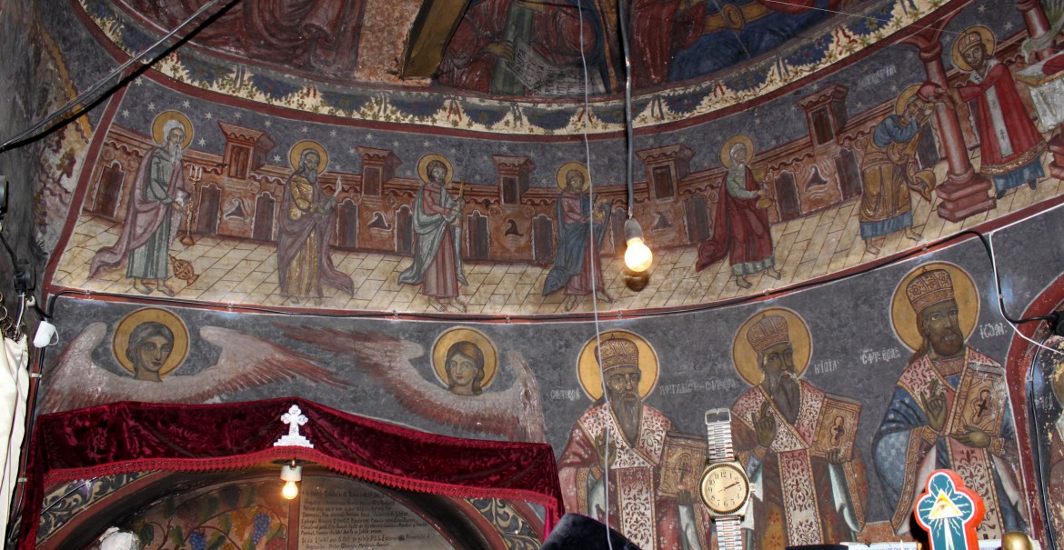 „În această Sfânta și Dumnezeiască Biserică s-a curățit și s-a restaurat pictura, după cum se vede, în 1963, cu ajutorul lui Dumnezeu, prin stăruința Preotului Paroh Radulescu N. Ștefan, epitropul bisericii Dumitru C. Busuioceanu, cântarețul parohiei Dumitru Diaconu, ajutat de toți membrii Consiliului Parohial și Comitetului Parohial, enoriași din satul acesta și satele vecine și s-a sfințit azi, 06 octombrie, în zilele P.S.S. Episcop al Râmnicului și Argeșului, Pictor Gheorghe Poenari.”